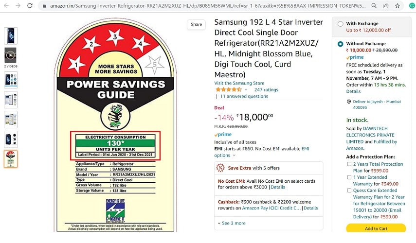 - Electricity Tariff – Electricity tariff is the amount the electricity provider charges you for one unit (kWh) of electricity. I live in Mumbai, India here the electricity tariff is Rs 12/kWh. If you don’t know how to calculate your tariff then just divide your total bill by monthly power consumption and you will get your electricity tariff.